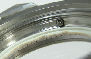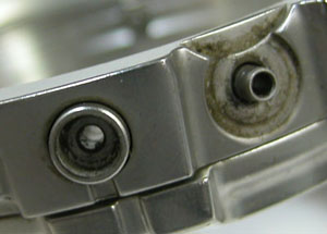 この写真をみてもパッキンが効いている事がわかります。ただ竜頭の根本がかなり錆びているのが分かります。