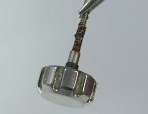 2009年12月お預かりから1年が経過。到着後すぐに内部が曇って止まって放置していたら止まった言う事ですが。止まって直ぐならムーブメント取り出しで乾燥も出来ましたが1年も経ってからとなると。インデックスや針の夜光部分が粉状になっています。