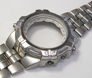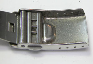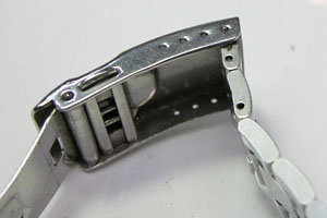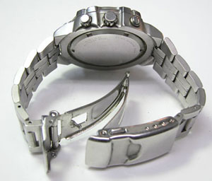 ステンレス無垢バンドに三つ折れダブルロック。