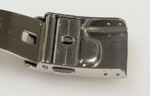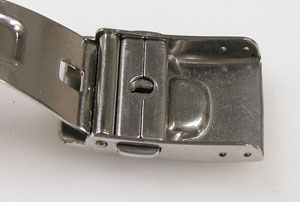 ステンレス板巻きバンドに三つ折れダブルロック。