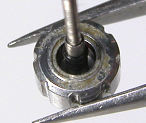 動作確認をして裏蓋を閉め”0位置合わせ”。バンドも洗浄して。