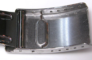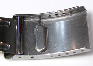 ステンレス無垢バンドに三つ折れダブルロック。これもダイバー仕様。裏蓋はスクリューバックで。