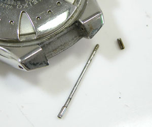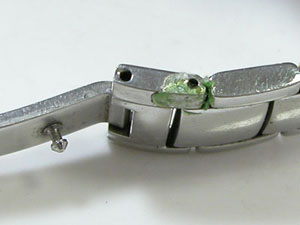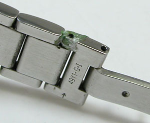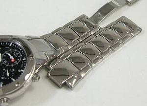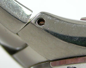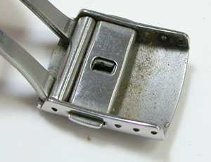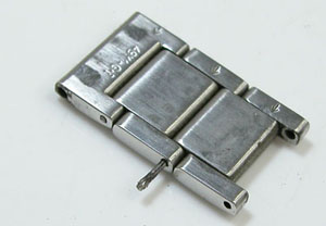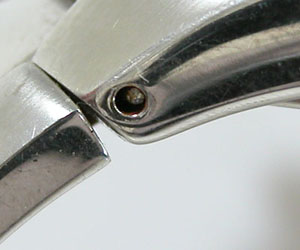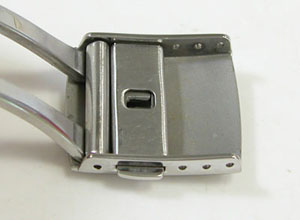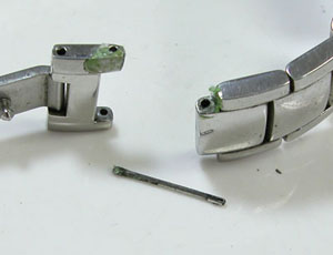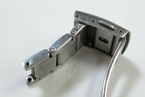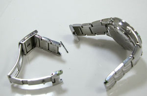 ステンレス無垢バンドに三つ折れプッシュバックル。割ピンが壊れているので交換のご依頼もあり。