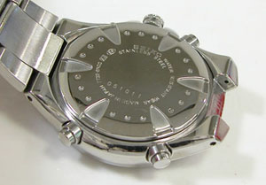 パッキンは交換してシリコン塗布をして裏蓋に戻します。裏蓋を閉め竜頭を戻して簡易防水テストがてらの洗浄。
