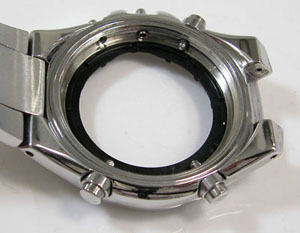 ケースの洗浄は終わってツヤが出ましたね。ミラー仕上げのケースにベルトなのでバフ掛けで新品の様に綺麗に。