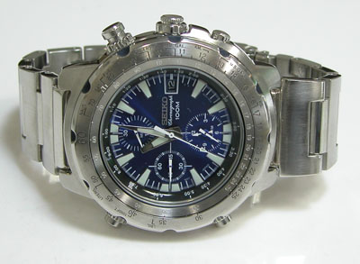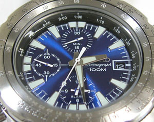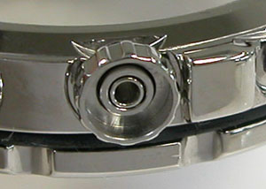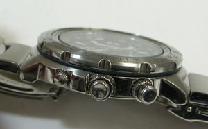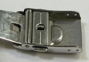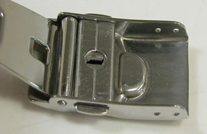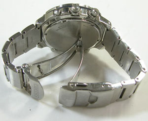 ステンレス無垢バンドに三つ折れダブルロックはプッシュバックル。