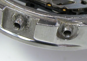 綺麗になったケースにムーブメントを戻して電池格納部をチェックします。