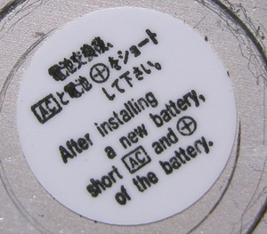 裏蓋裏側。リセット方法の表記。