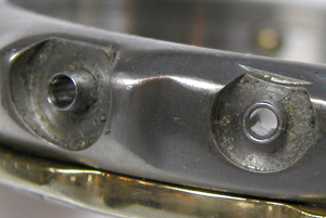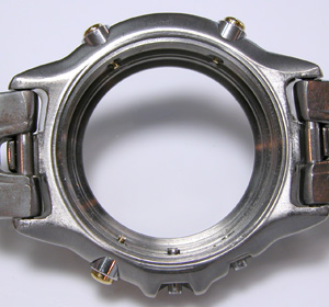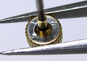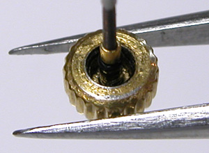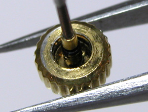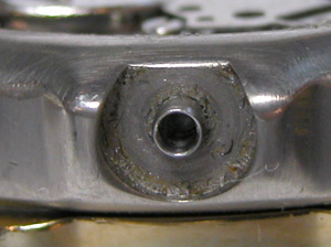 竜頭パイプもチェックします。こちらアラーム用竜頭の裏側チェック。