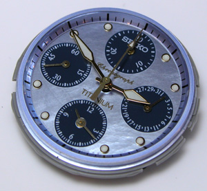SEIKO クロノグラフ7T34-0010電池交換メンテナンスです。2つ竜頭がありますが一つはアラーム時刻設定用。
