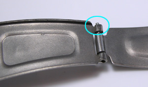 バネ棒外しなどで突いてみて簡単に抜けるようであれば、この部分板を巻いてあるのみですから、ペンチの先で挟んで締め付けるしかありません。