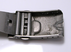 バックルも綺麗になりました。おや?今写真を見て気が付きましたが、この部分のピンが抜けそうになっています。この部分は割ピンやネジでは無く”ただの棒”が入っています。よって叩き込むかラジペンで上下を挟んで押し込むしかありません。