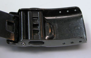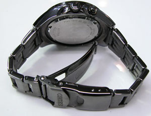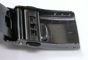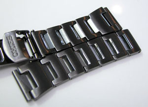 ステンレス無垢バンドに三つ折れダブルロック。