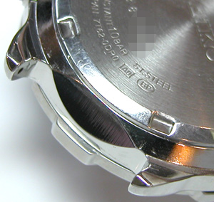 セイコークロノグラフではお馴染みのムーブメント。このムーブの電池はSR927ですね。竜頭の裏側チェック。