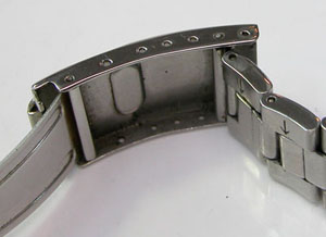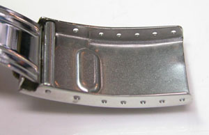 ステンレス無垢バンドに三つ折れダブルロック。
