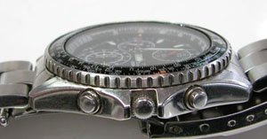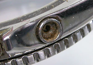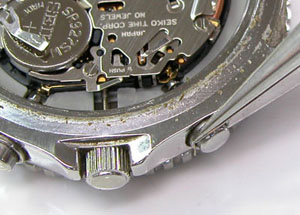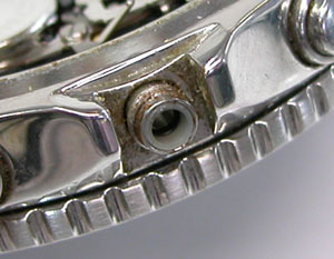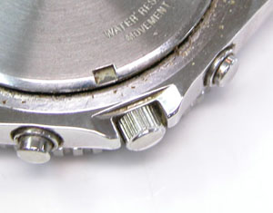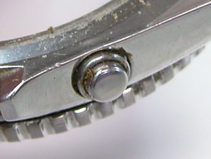 裏蓋はスクリューバックでプッシュボタンが片方沈んだままです。