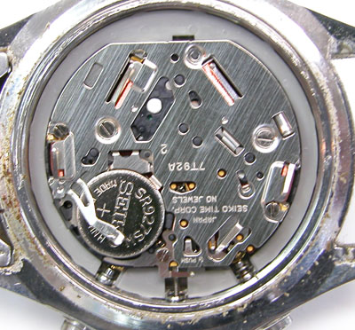 綺麗になったケースにムーブメントを戻して電池格納部をチェックします。