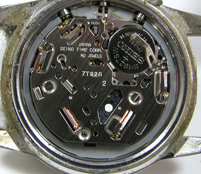 2012年2月13日お預かりのSEIKO 7T92-0DW0電池交換メンテナンスです。下のプッシュボタンが効かないという事ですが、汚れによる固着か?