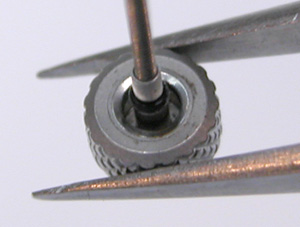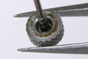 竜頭の裏側チェック。これが取り出した文字盤&ムーブメント。