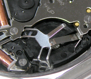 ラグ部もピッカピカになりました、この部分は意外に綺麗になりにくい箇所ではあります。ムーブメントを戻して電池を抜きます。