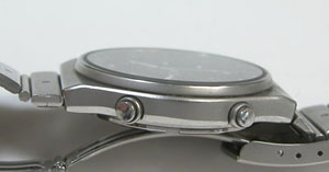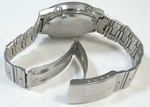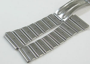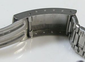 ステンレス半無垢バンドに三つ折れバックル。