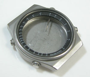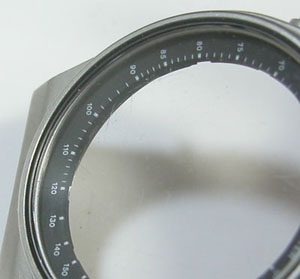 ガラスの内側に目盛リングがありますから裏蓋を閉め竜頭を戻して簡易防水テストがてらの洗浄。