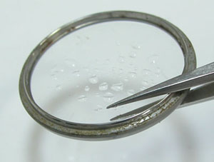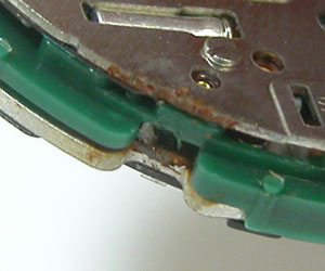 ケースの内側にもサビが浮き始めていますね・・・もう1日経過すれば茶色い箇所の面積は倍になるでしょう。