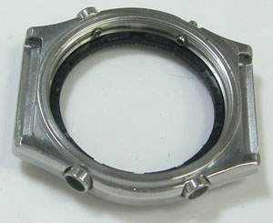 ケースの洗浄は終わってツヤが出ましたね。このガラスとベゼルですが本来はプレス器で取り付けるものですが、指で押さえてはまりました。これでは防水機能は期待出来ません。かといってプラスチックパッキンの交換パーツが無い限り仕方がない。このパッキン、オークションなどでも売っておりますが厚みとか高さとか合わないと元の防水機能は期待出来ないので既製への交換は安心ではありません。