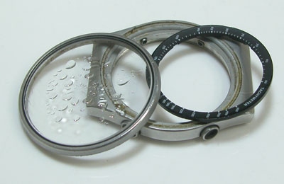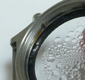 このガラス、ベゼルにはまっていてベゼルがこじ開け工具で簡単に外れました。これでは非防水と同じくらいでしょう。かといって交換用パッキンはありませんが。