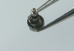 0位置合わせを行いますが、やはりムーブメント側のレバー錆びていた箇所はプッシュボタンが効きませんから右側の小針は修整不可でした。