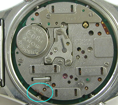 一応、電池格納部をチェックしますがサビは無し。ただムーブメントにツヤがありません。