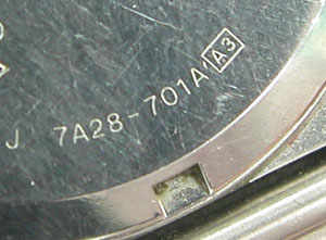 2011年5 26月お預かりのSPEED MASTER 7A28-701A電池交換メンテナンスです。ご覧のようにガラスに水滴が。雨の日に着けていたらこうなったと。一応は防水時計ですが何故?ちなみにCooの腕時計でも解説しておりますが、こうなると3日が生命線。よってお客様が帰られた後、即ムーブメントを取り出し乾燥させます。