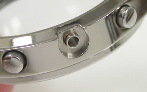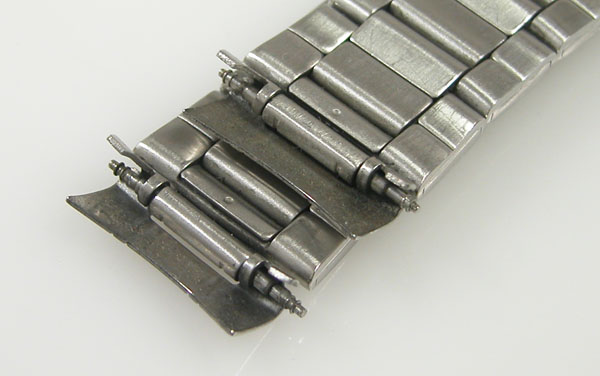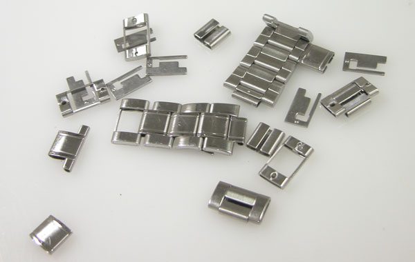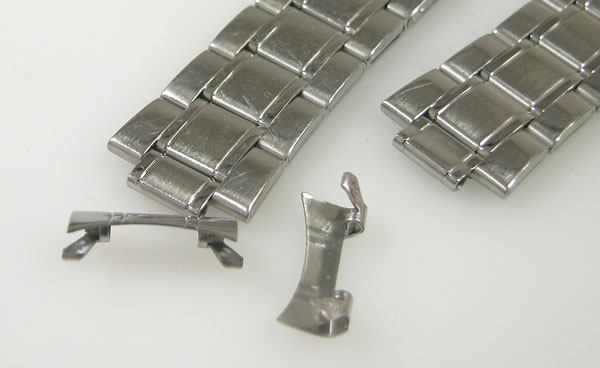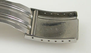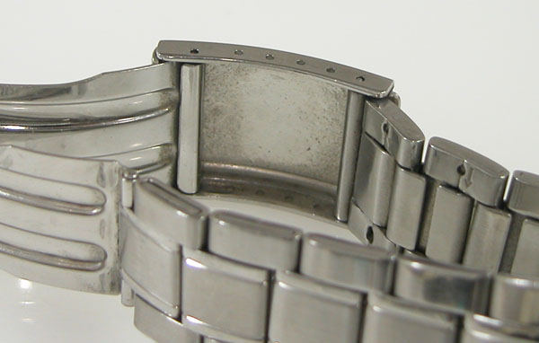 ステンレス板巻きバンドに三つ折れバックル。