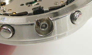 綺麗になったケースにムーブメントを戻して電池格納部をチェックします。