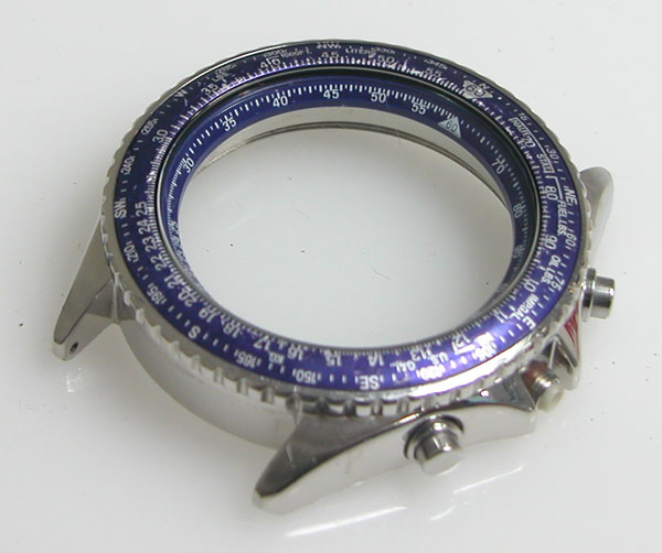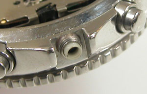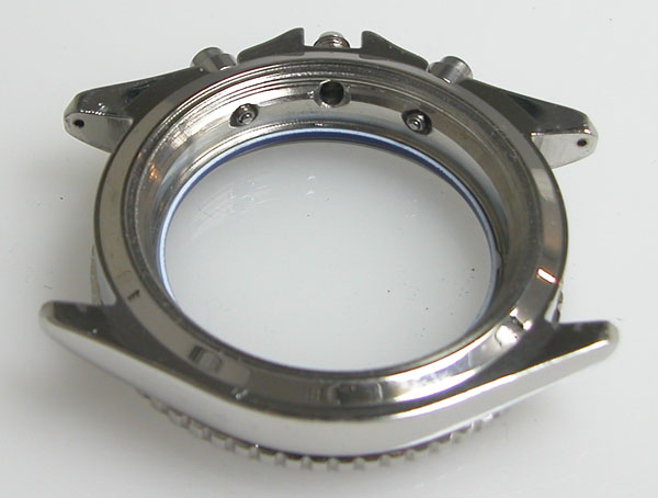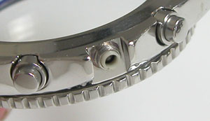 目盛リングがあるので、そのまま洗浄は出来ません。裏蓋を閉め洗浄レベルでの水漏れは無いかチェックします。