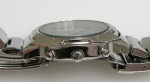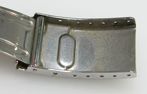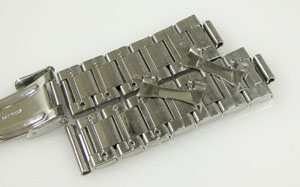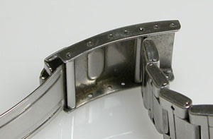 ステンレス無垢バンドに三つ折れダブルロック。
