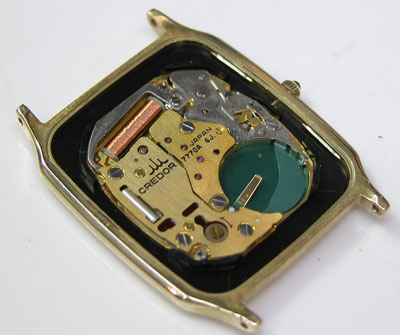 綺麗になったケースにムーブメントを戻して電池格納部をチェックします。