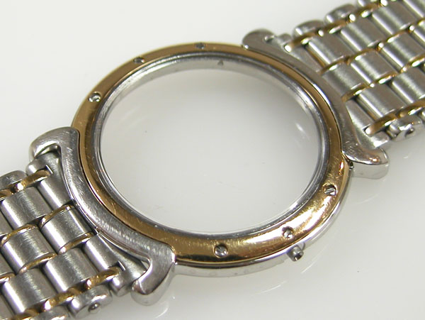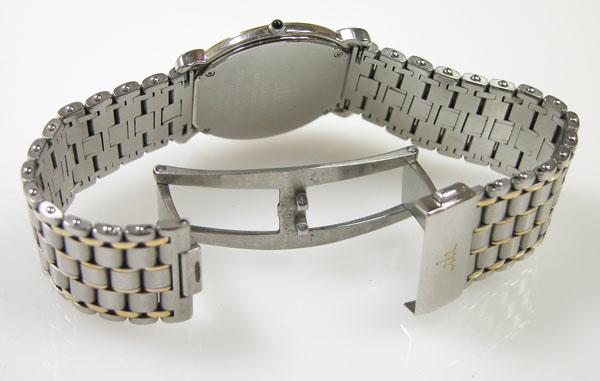 ステンレス無垢バンドに両開きバックル。