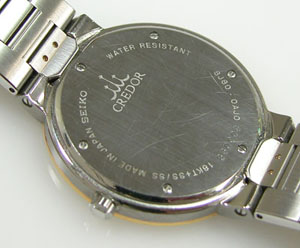 2013.5.11お預かりのCREDOR 8J80-0AJ0電池交換メンテナンスでご依頼ですが、ムーブメント取り出しにリスクがある構造なので今回「電池交換のみ(洗浄なし)1.500円コース」とさせて頂くことに。