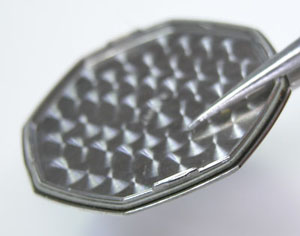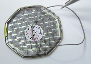 裏側からチョン!と突いたのみでガラスが外れます。先ずは接着剤を綺麗にそぎ落として。