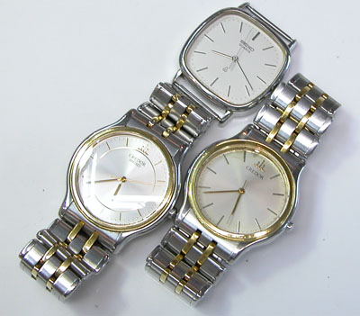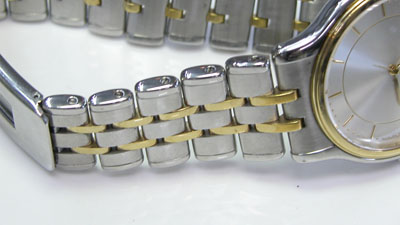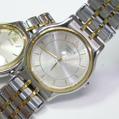 同じ腕時計が2本ですが1本を潰して2個イチのご依頼です。コマの流用でベルト調整もですがクレドールのメタルバンドだと費用もかなりの物ですから「オークションでジャンク出品」を狙って1万円くらいならベルトのコマ取りでも安いかも?