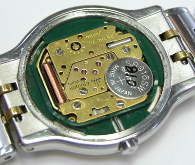 綺麗になったケースにムーブメントを戻して電池格納部をチェックします。