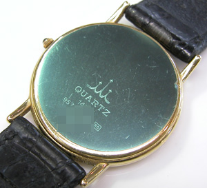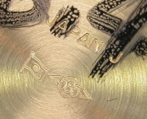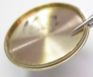 裏蓋は”はめ込みタイプ”で右が裏蓋記載。おや、14Kと。