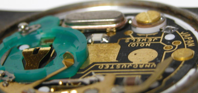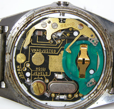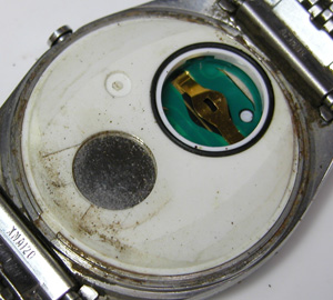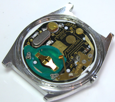 これが取り出した文字盤&ムーブメント。この頃はデジタルの液晶は10年が限界として販売していましたが現実は20年以上経っても健在の液晶が殆ど。