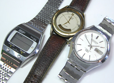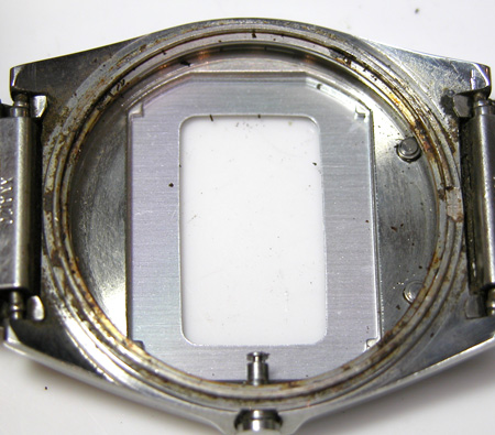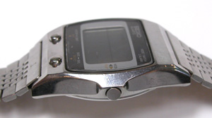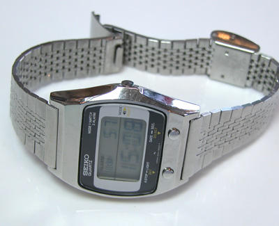 SEIKO デジタル A021-5000電池交換メンテナンスです。ベルトとケースが一体風の仕上げ。1980年代はこういった”なるべく薄く見せるデザイン”が流行りました。