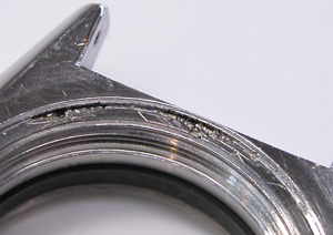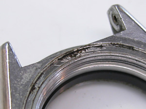 ケースの洗浄は終わってツヤが出ましたね。サビは取れましたが、えぐれて凹んだ部分は残ります。