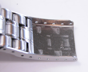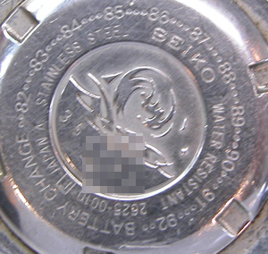 こちら裏蓋記載、ダイバーですから電池交換時期を刻印出来るようになっています。