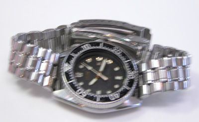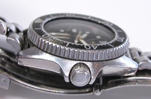 回転ベゼルに、ねじ込み竜頭はダイバー仕様。ベルトは交換されていますね。