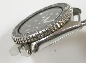 回転ベゼルに、ねじ込み竜頭はダイバー仕様。裏蓋はスクリューバックで。