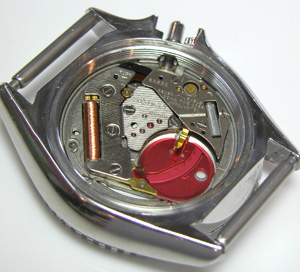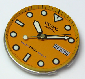 ダイバーの竜頭は形状が違いますね。これが取り出した文字盤&ムーブメント。